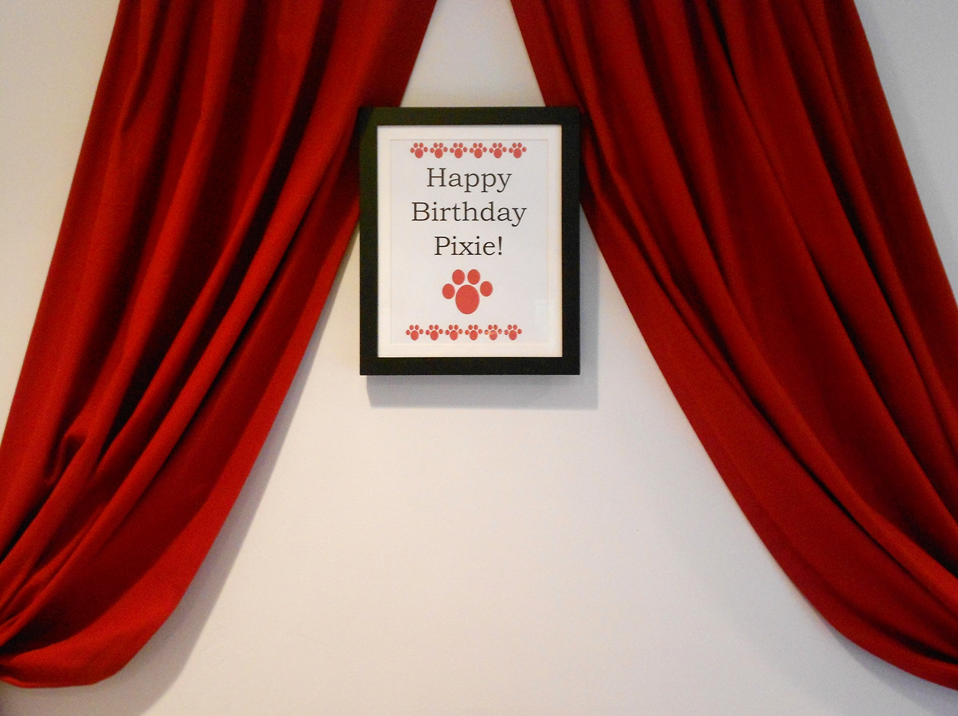 For the background, red curtains and a framed “Happy Birthday” paw print sign finished the look, giving our regal beagle the royal treatment she deserved.
