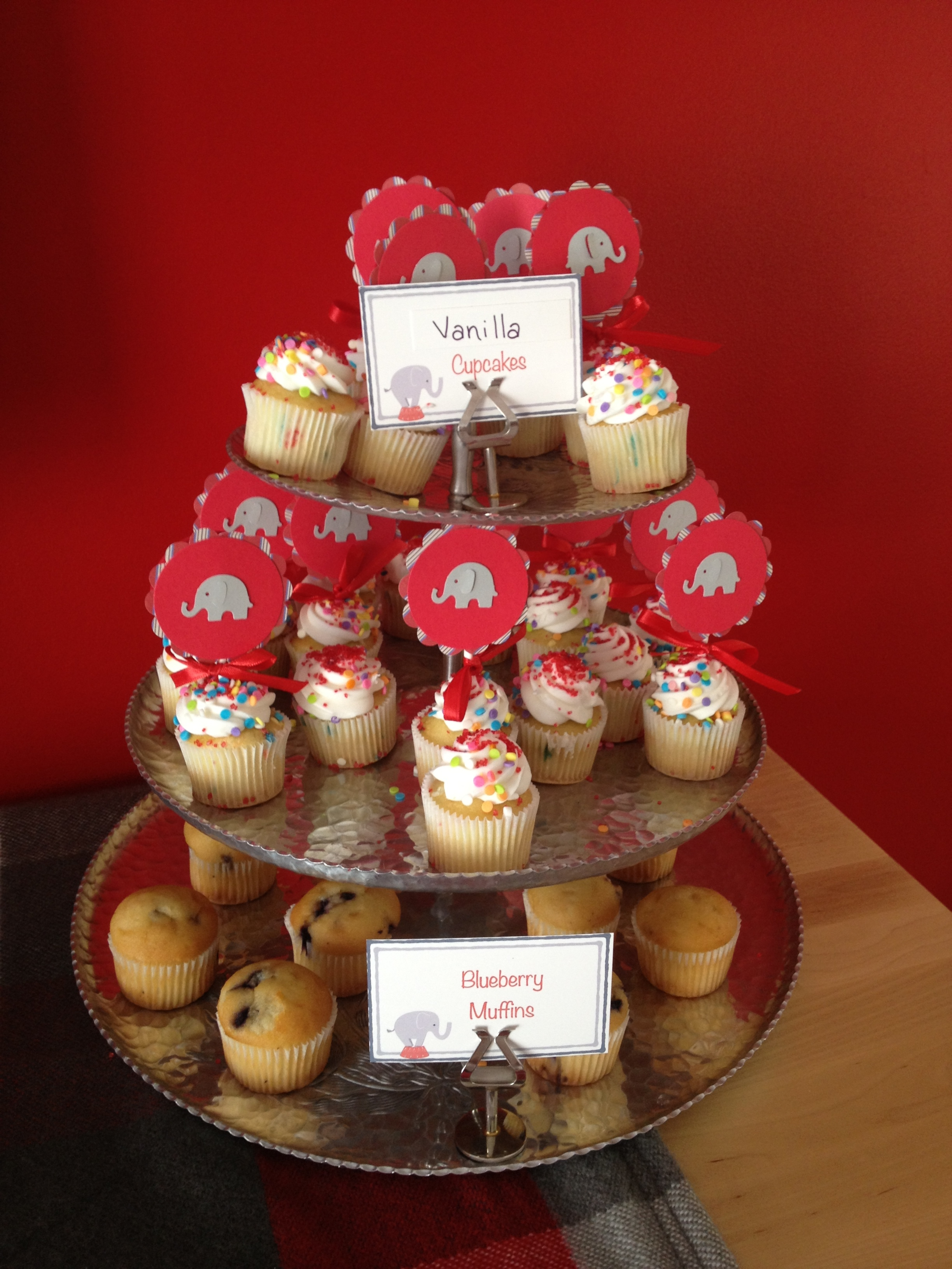 The theme was elephant (a favorite in the family), and the colors were also family favorites — red and gray.