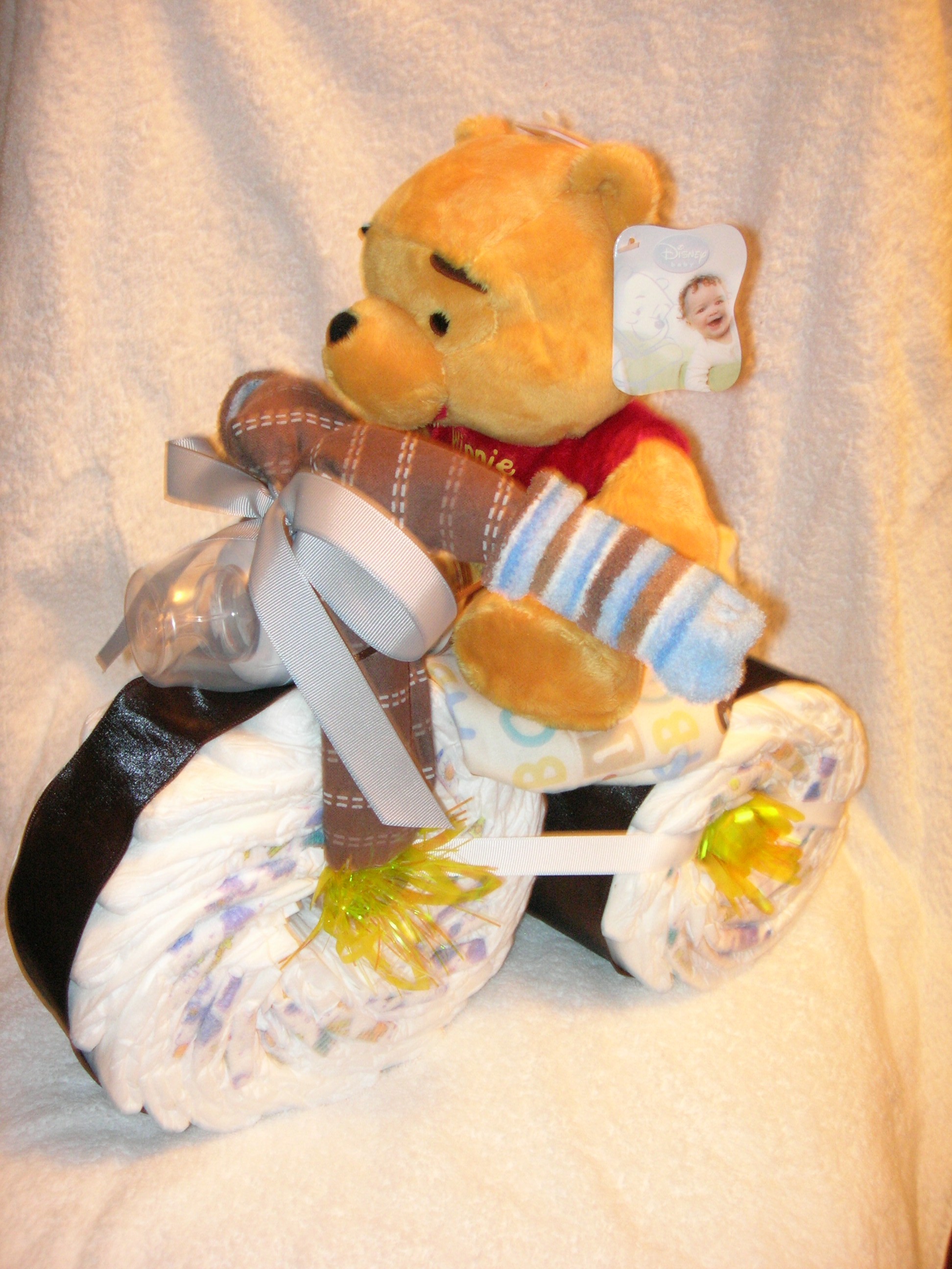 The characters have so many colors to play with, and I decided to use them all! Using the poster shown in the photo above (found online) as my inspiration for the food & drink labels, the diaper cakes, and the sweets. There were four party stations for the cutest Winnie the Pooh baby shower.